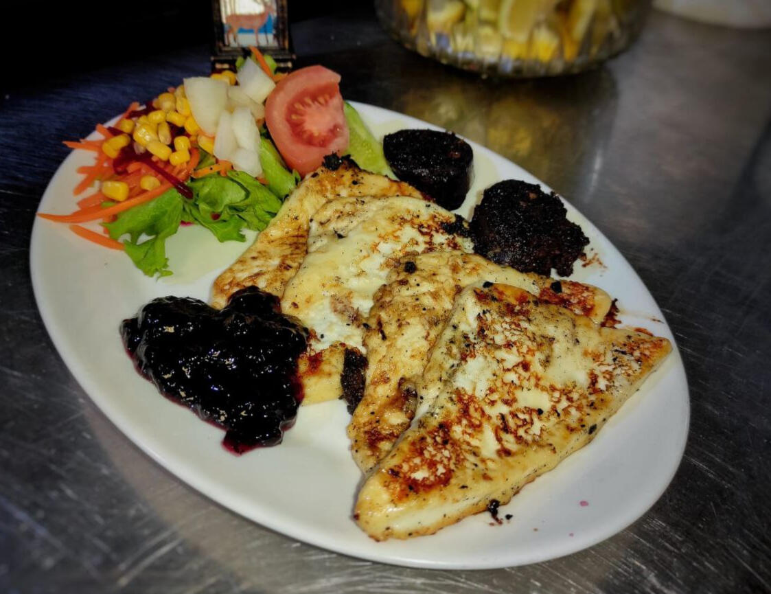 (Nuts, raisins, onion, tomato, lettuce, carrot, corn, and special house dressing).Queso Asado con mermelada: 5,00 / 9,00€